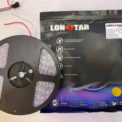 اگر به‌دنبال یک ریسه LED قدرتمند، قابل برنامه‌ریزی و مقاوم برای پروژه‌های نورپردازی حرفه‌ای هستید، ریسه LED نواری 12ولت مولتی کالر آیسی RGB 2811 تراکم60 IP67 (روکش دار) برند لان استار حلقه 5 متری انتخابی هوشمندانه خواهد بود. این ریسه با تراکم 60 پیکسل در هر متر، قابلیت آدرس‌پذیری پیکسل‌ها را از طریق آی‌سی WS2811 فراهم می‌کند، به‌طوری‌که هر بخش (سه LED) می‌تواند به‌طور جداگانه کنترل شود.